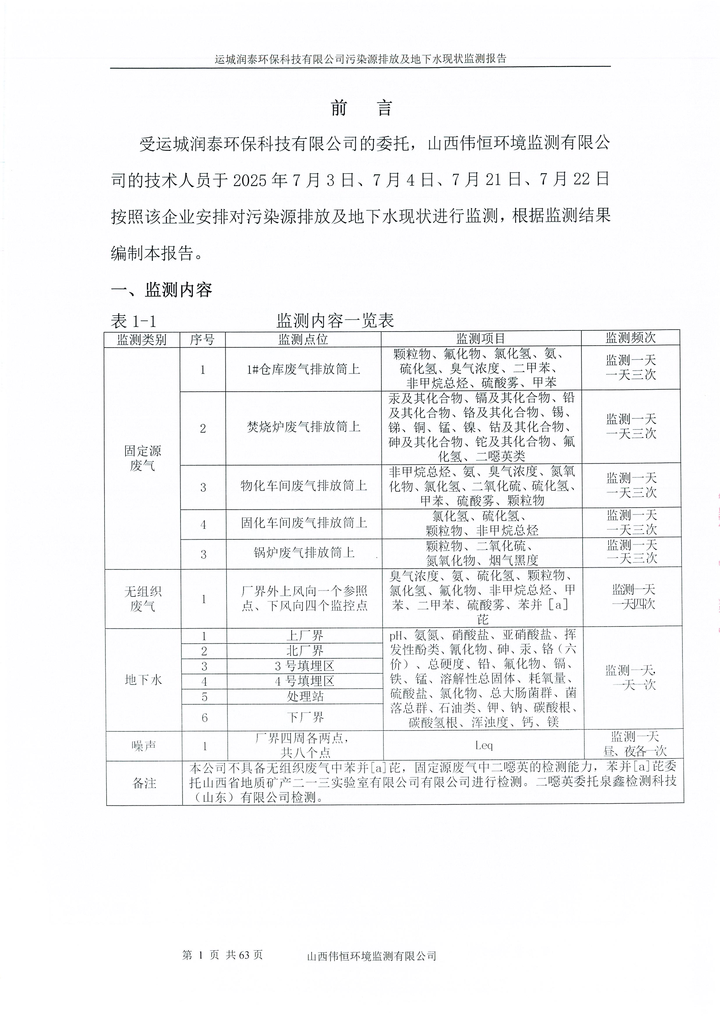 2025年潤泰環(huán)保七月份自行監(jiān)測報告